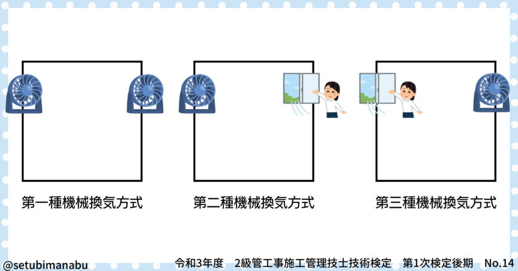 第三種機械換気は給気は自然換気、排気は機械換気です。